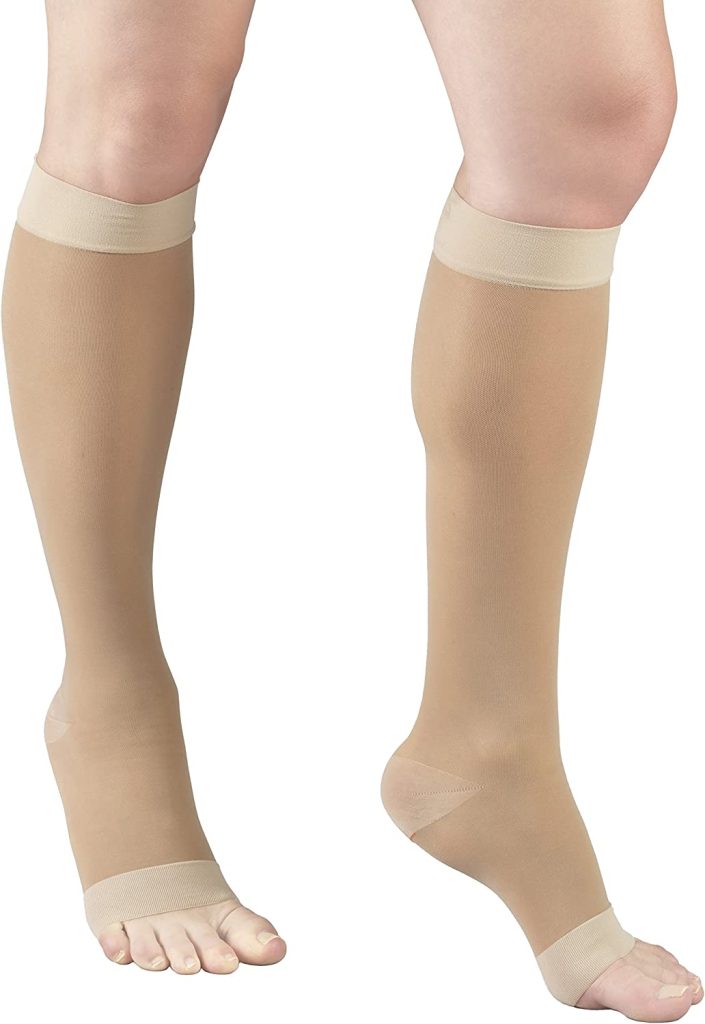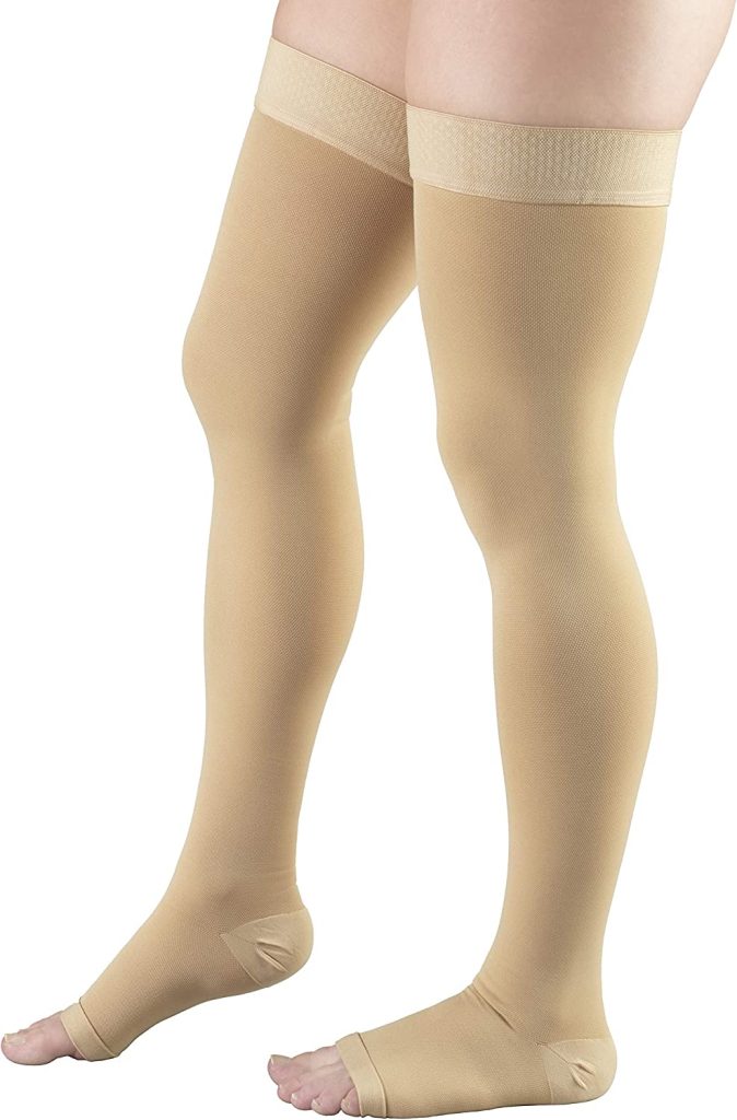Tynor Compression Stockings Mid Thigh Classic provides graduated compression, which is strongest at the ankle and it gradually decreases as we move up. This controlled and graduated compression effectively stops any abnormal back flow of blood. They compress the outer walls of superficial veins to prevent varicose veins.