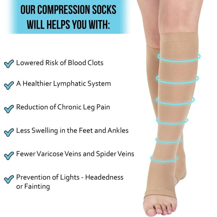 You wear compression stockings to improve blood flow in the veins of your legs. Compression stockings gently squeeze your legs to move blood up your legs. This helps prevent leg swelling and, to a lesser extent, blood clots.
