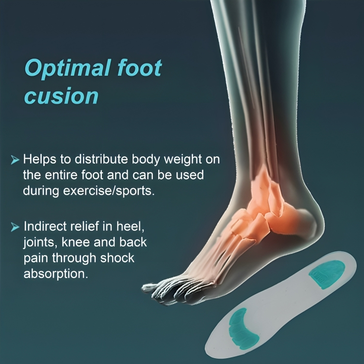 • Ergonomic designing improves compliance. Mesh design further enhance cushioning. Optimal thickness allows effective cushioning on one hand but can be easily be put into shoes on