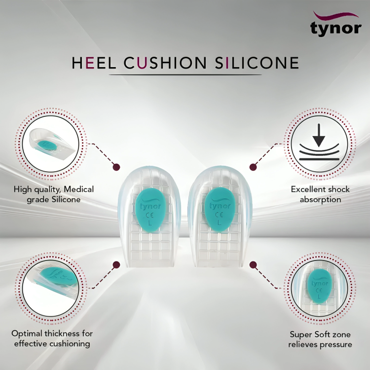 Heel Cushion Silicone (Pair) is designed to provide soft cushioning to the foot heel. Gel spot at the site of calcaneus reduces/distributes pressure and relieves pain.