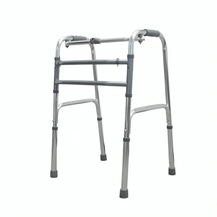 The Walking Frame With Wheels is a versatile mobility aid designed to enhance balance and provide additional support for everyday activities. Its two-wheeled design allows for fluid movement, ideal for both indoor and outdoor environments. Made from lightweight aluminum, this walking frame ensures effortless transport and convenient storage, folding neatly for portability. The sturdy construction offers dependable stability, while the adjustable height accommodates personal comfort, making it an excellent choice for those seeking a reliable walking companion.